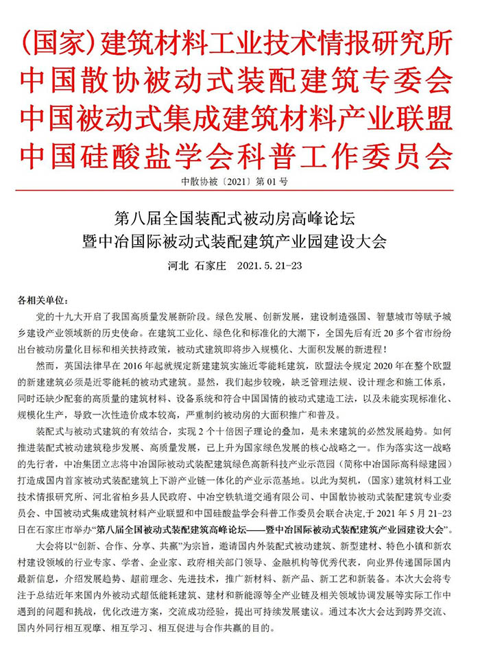 第八屆全國裝配式被動房高峰論壇 暨中冶國際被動式裝配建筑產業園建設大會